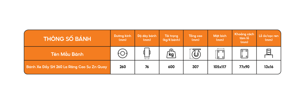 Bánh xe SH260LR cao su Zn Quay hay Bánh xe đẩy SH260LR cao su Zn Quay